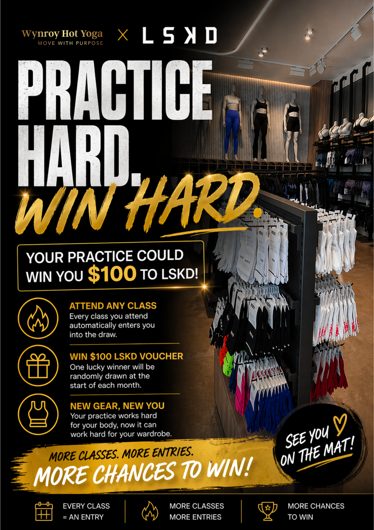 Starting this May, every class you attend automatically enters you into our monthly $100 LSKD voucher draw.